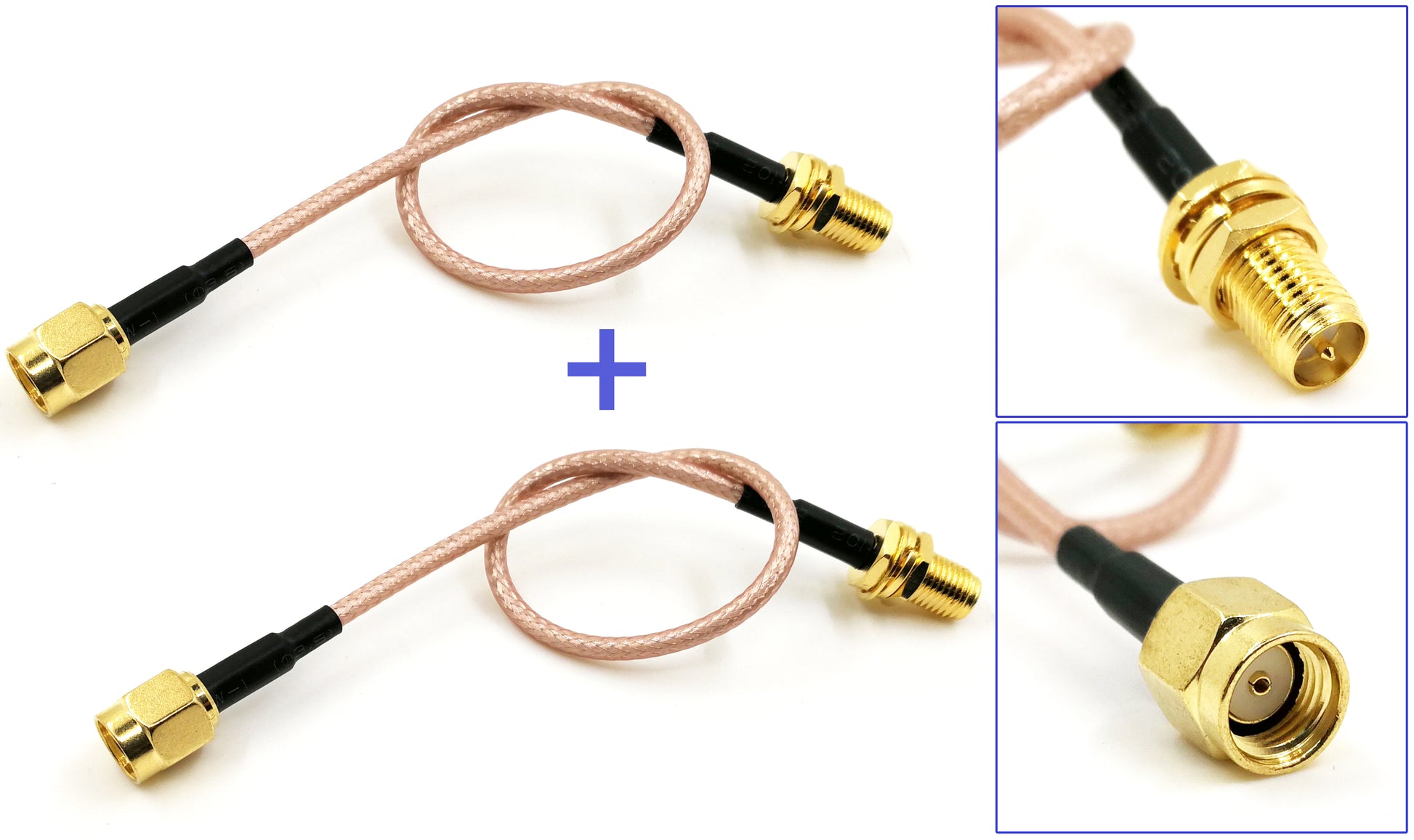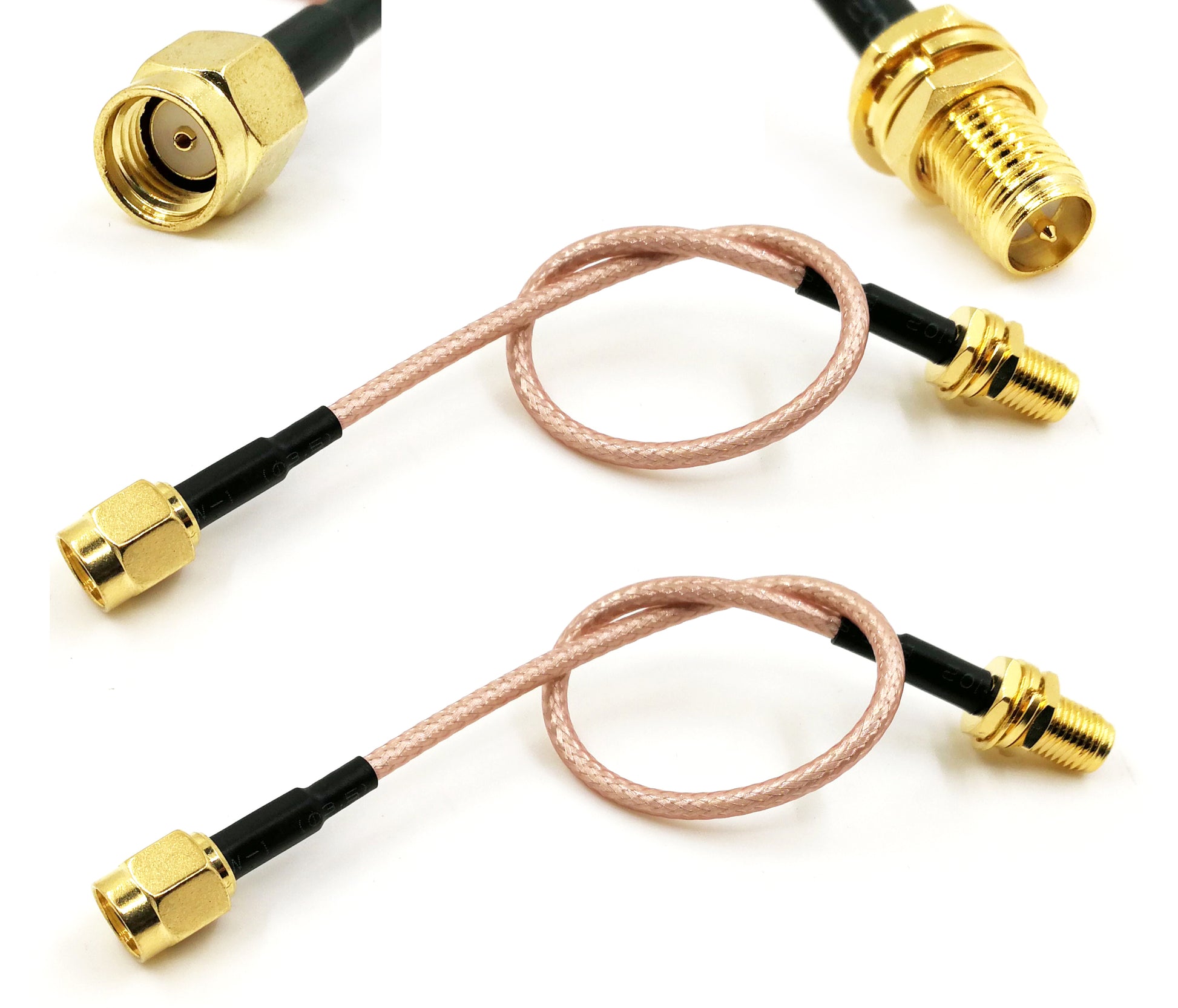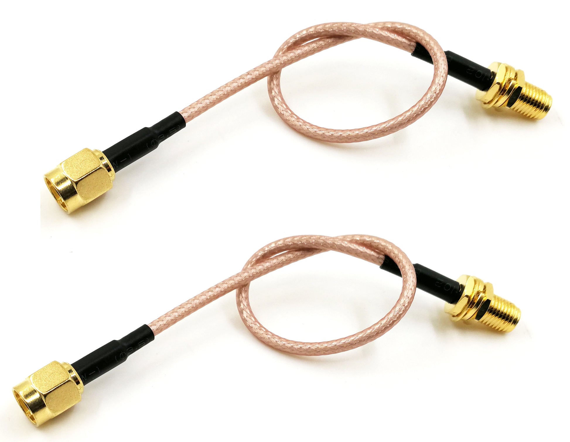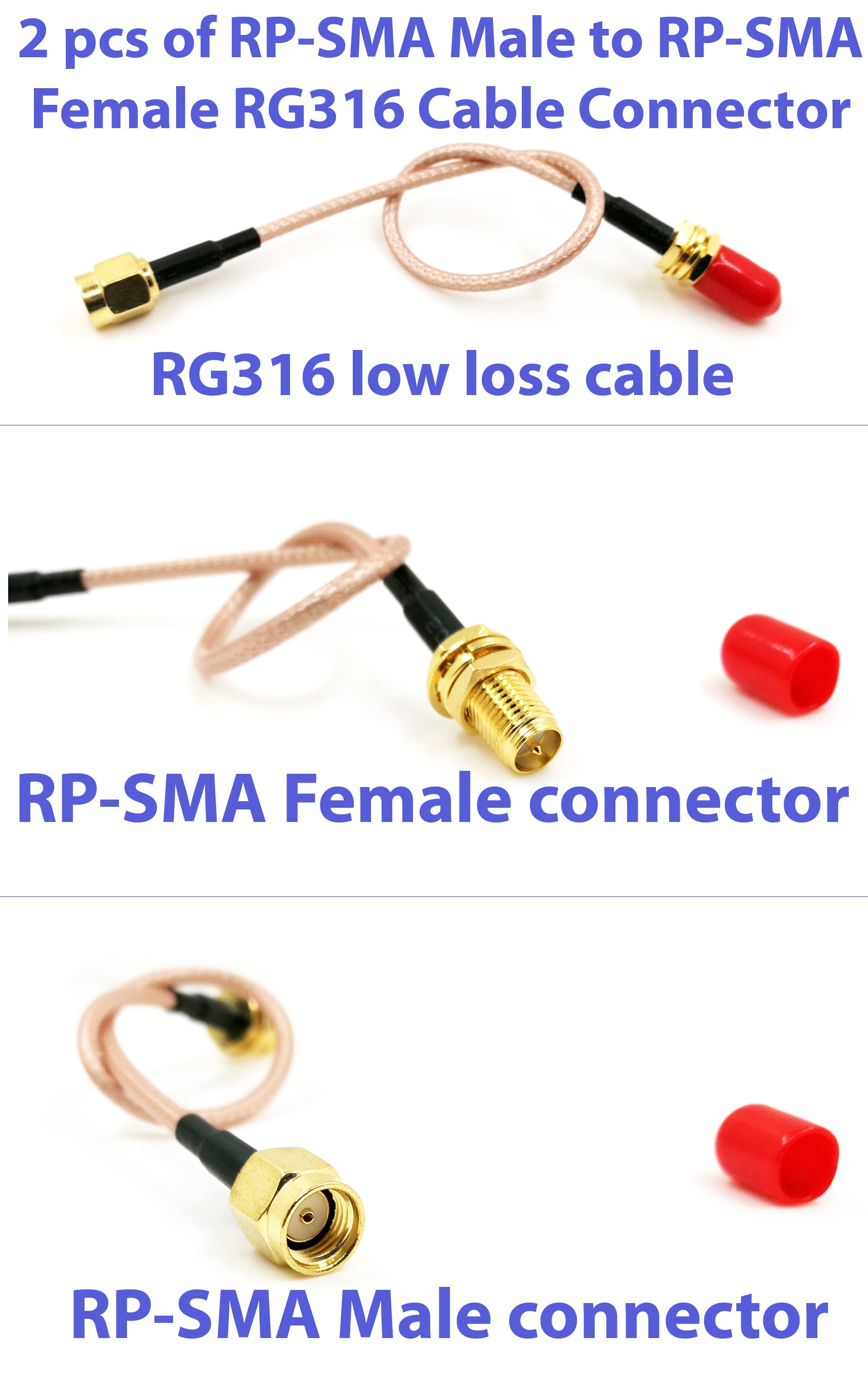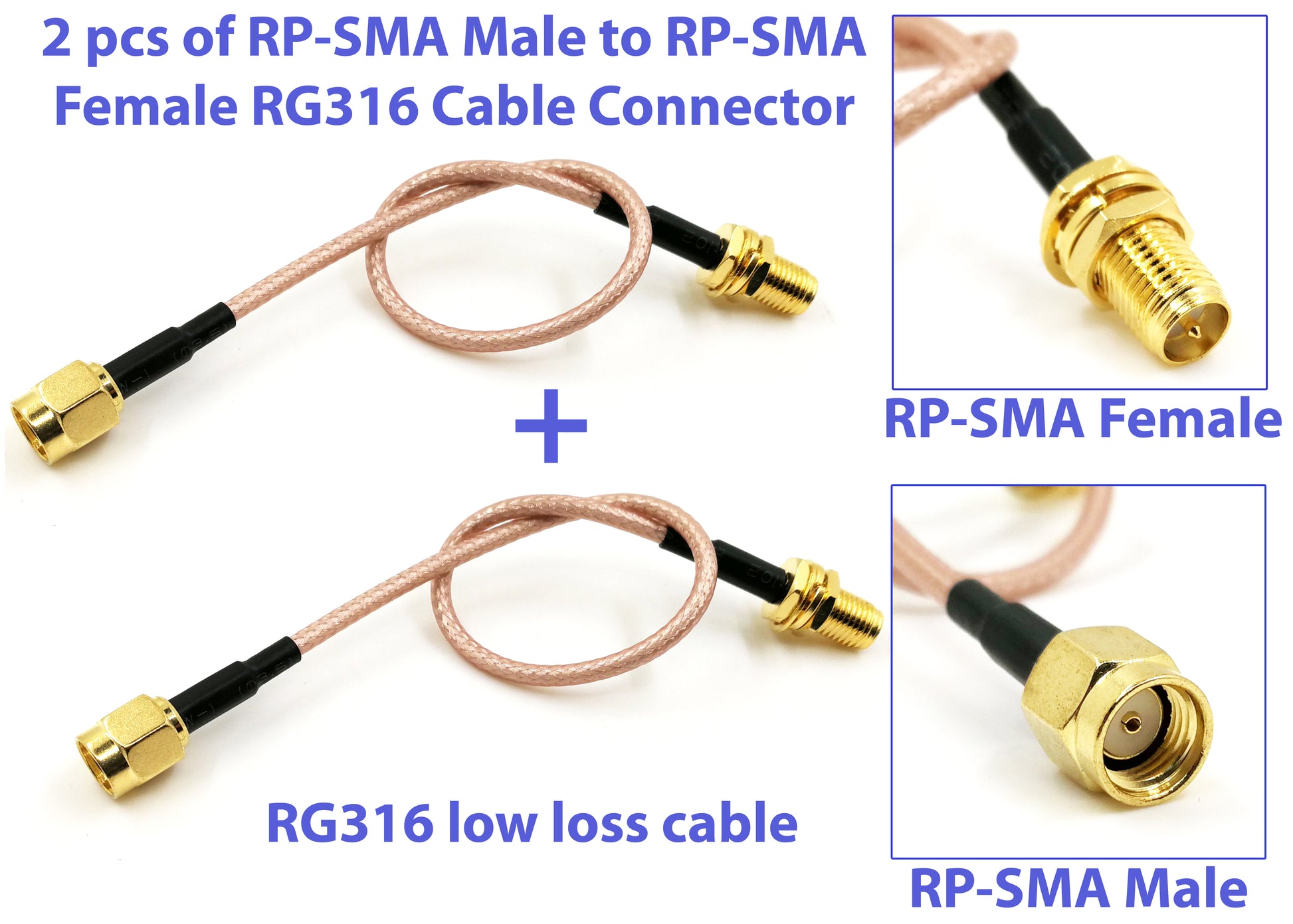 2pcs of RF RG316 pigtail RP-SMA Male to RP-SMA Female Nut Bulkhead Crimp Cable. <br> Used widely for router, booster and WLAN Wi-Fi Antenna conversion. <br> The antenna adapter can connect your phone to the antenna to provide better reception in no signal areas. <br> High-frequency low-loss antenna extension cord. RG316 military standard Teflon silver plated wire feeder with acid corrosion resistant high temperature and other characteristics. <br><br> PRODUCT FEATURES: <br> - Product name : RP-SMA Male to RP-SMA Female RG316 pigtail cable; <br> - Connectors : RP-SMA Male to RP-SMA Female; <br> <br> - Cable type : RG316 coaxial; <br> - Impedance : 50 Ω; <br> - Operating temperature : -40°С ~ +85°С. <br><br> PACKAGE INCLUDES: 2pcs of RF RG316 pigtail RP-SMA Male to RP-SMA Female Nut Bulkhead Crimp Cable